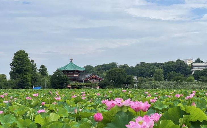 신오바즈 연못(不忍池) 주변에는 여름이면 연못 가득하게 핀 연꽃잎과 중앙의 벤텐도(弁天堂) 정자가 어우러져 그림 같은 풍경이 펼쳐지고, 그 연못 옆으로는 아이들이 좋아하는 우에노 동물원 입구가 있습니다. 특히 인기 스타인 판다를 보기 위해 항상 줄이 길죠.